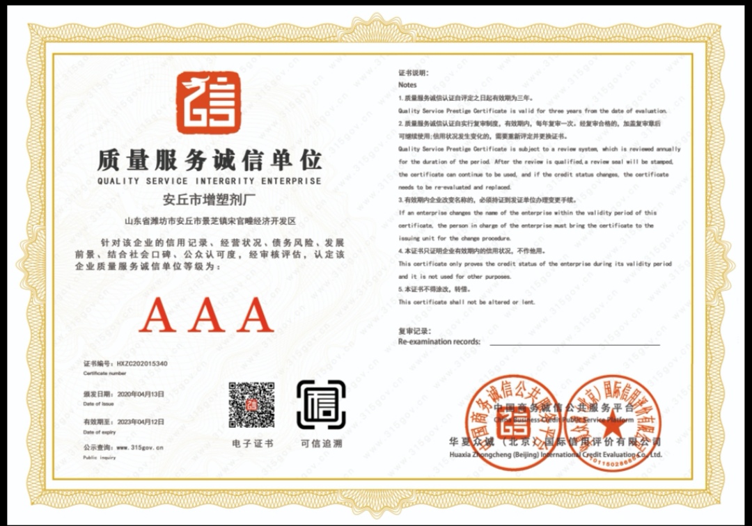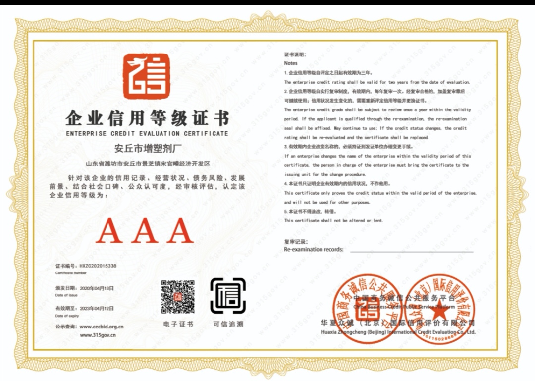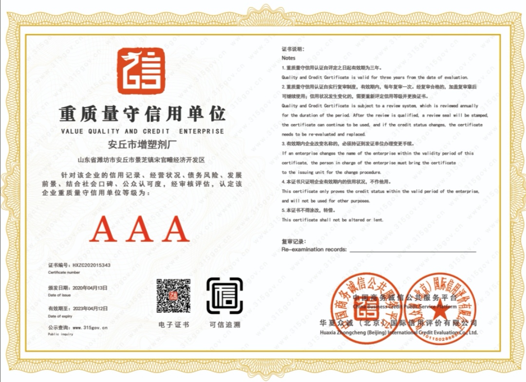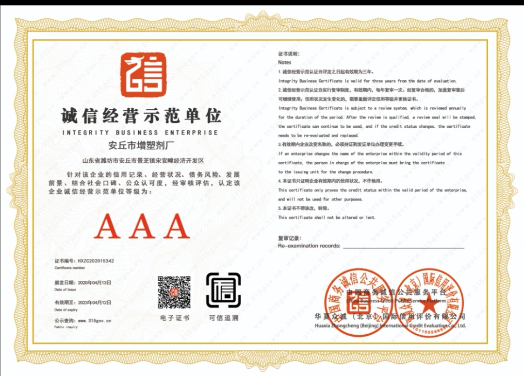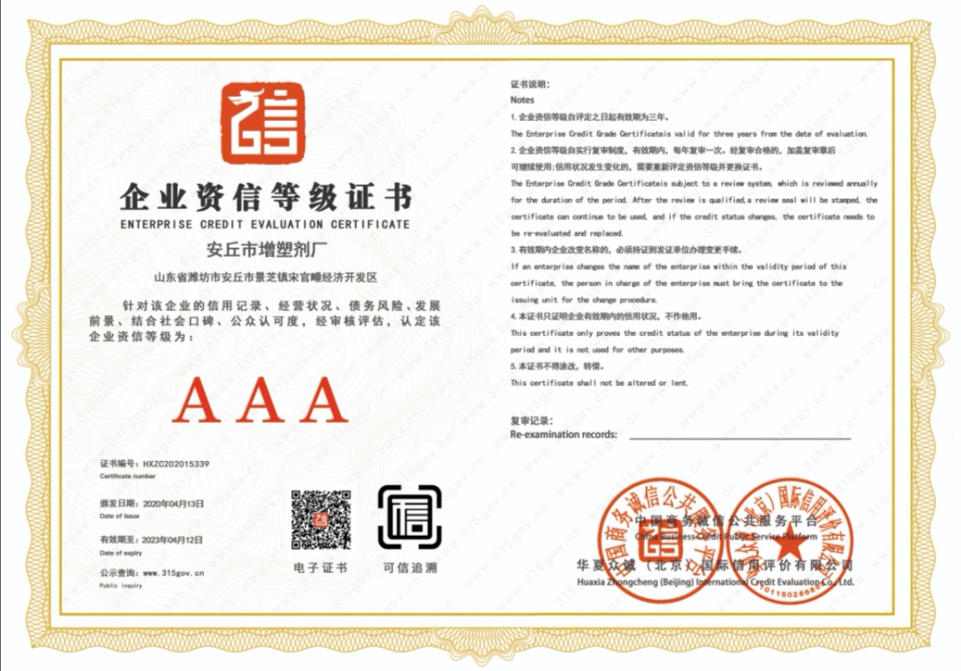 企業(yè)信用評(píng)價(jià)三A級(jí)信用企業(yè)