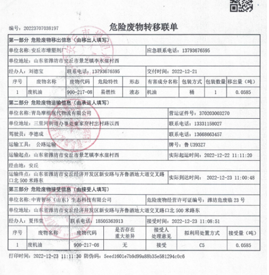危險(xiǎn)廢物轉(zhuǎn)移聯(lián)單2
